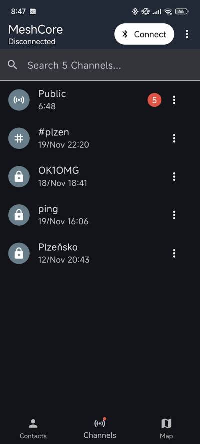 MeshCore se dá obsluhovat mimo jiné pomocí mobilní aplikace. Je stejná pro platformu Android i iOS - jediný rozdíl je ve správě Bluetooth, tomu se zatím věnovat nebudeme. Obsluha MeshCore pomocí mobilní aplikace je nejčastější způsob použití MeshCore sítě.